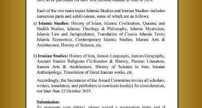 The 33rd I.R.Irans World Book Award Call for Books