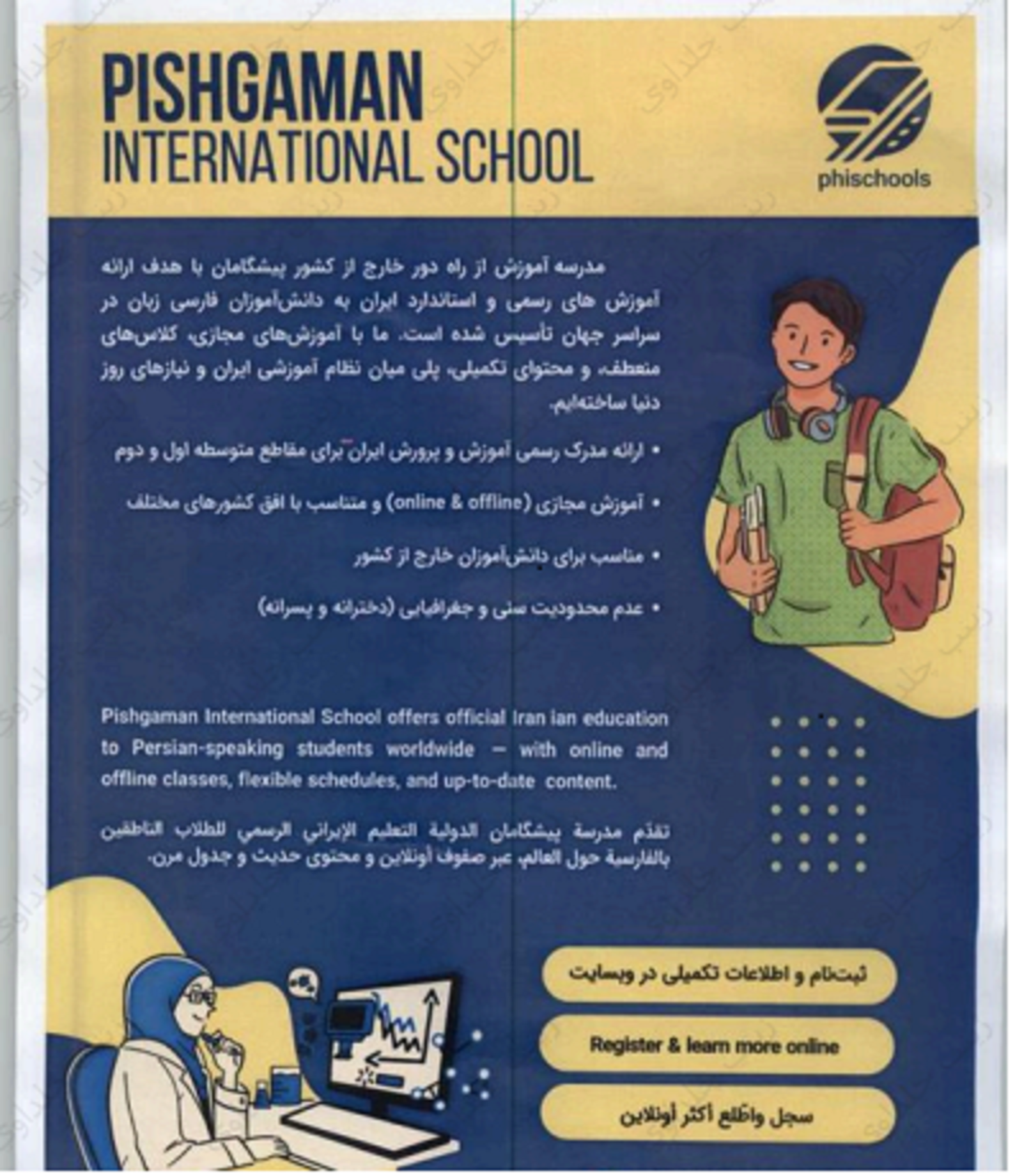 مدرسه آموزش از راه دور غیردولتی خارج از کشور پیشگامان هوشمند اصفهان